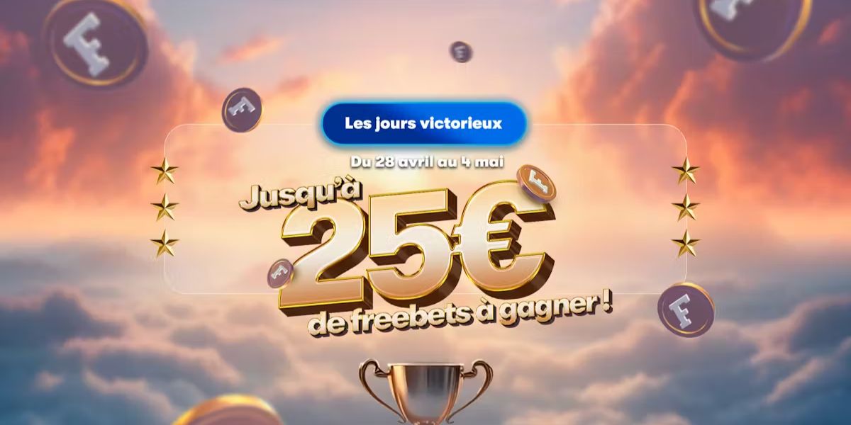 Entre le 28 avril et le 4 mai 2025, une promo pmu vous offre l’opportunité de remporter plusieurs bonus avec jusqu’à 25 euros à empocher. Tout ce que vous avez à faire, c’est de jouer. Vous recevez des freebets selon le nombre de jours où vous avez remporté un pari. Chaque jour, la cagnotte monte. Ainsi, si vous gagnez un pari uniquement un seul jour que dure l’offre, vous grapillez un bonus de 2 euros. Cela dit, en réalisant cette mission les sept jours, ce sont 25 euros qui vous sont promis. Il y a des paliers intermédiaires, mais cette offre est vraiment avantageuse.